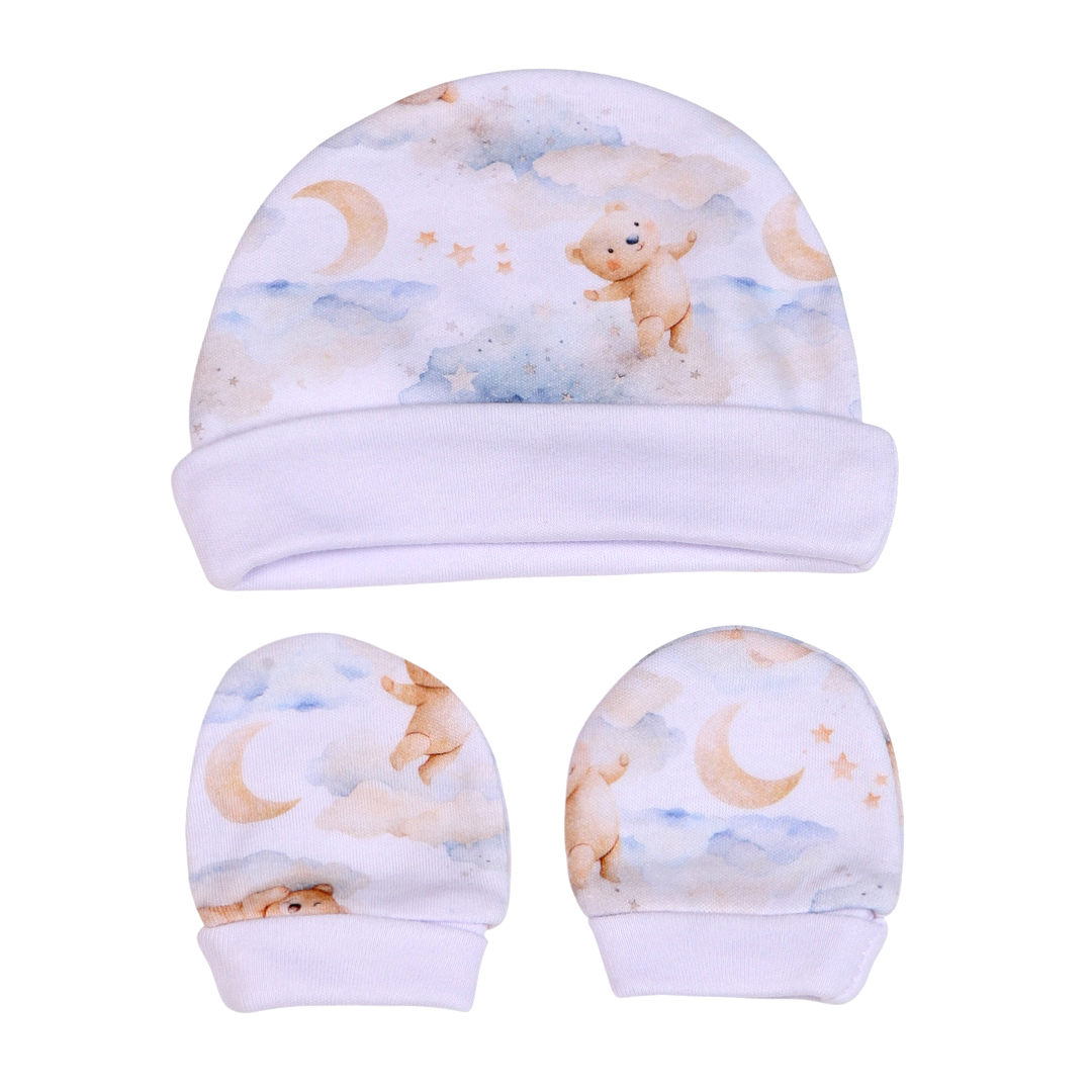 Conforto premium e delicadeza para os primeiros dias do seu bebê! O Kit Touca + Luva Pima Sued Estampado é ideal para manter o pequeno aquecido com suavidade, além de trazer um toque encantador com sua estampa delicada.