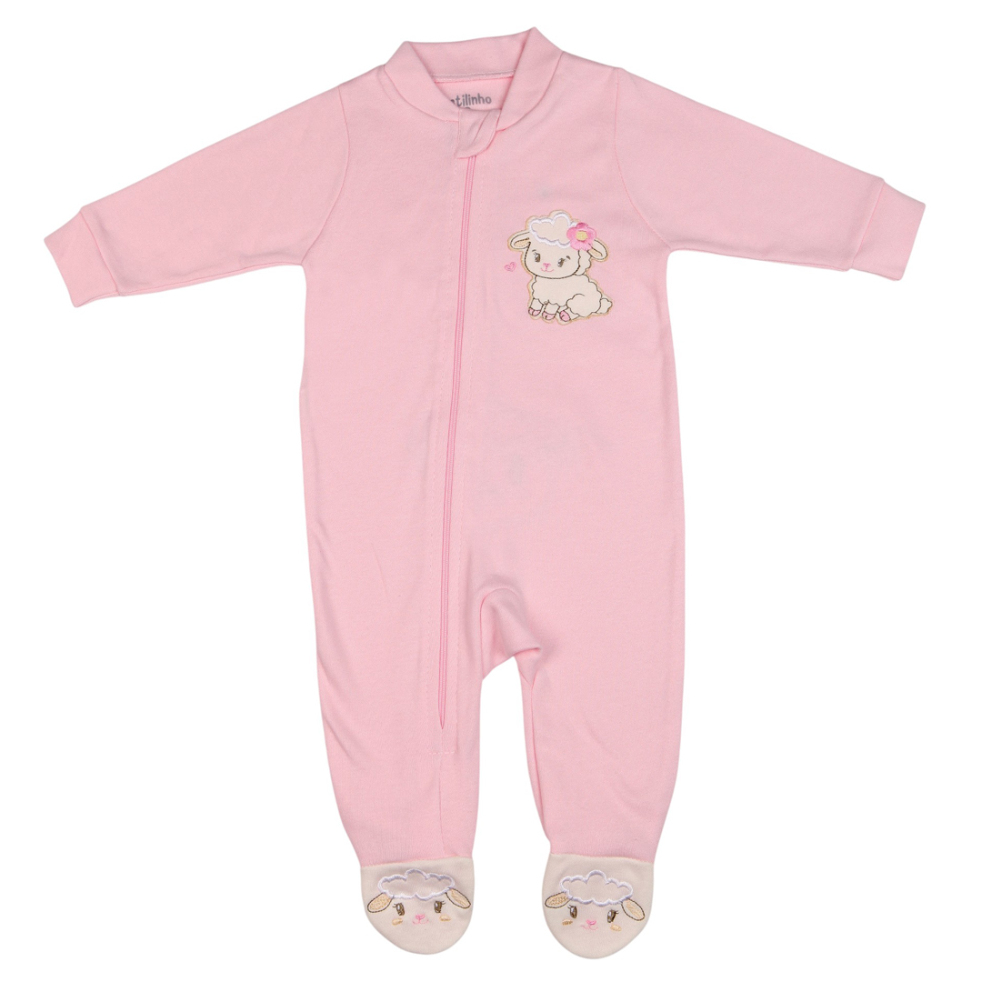 👶 Macacão Longo Bordado Carneirinho Bumbum e Pés Suedine c/ Zíper – Estilinho