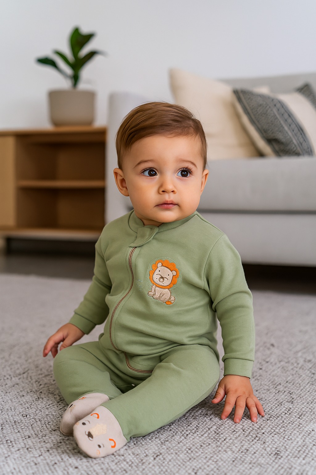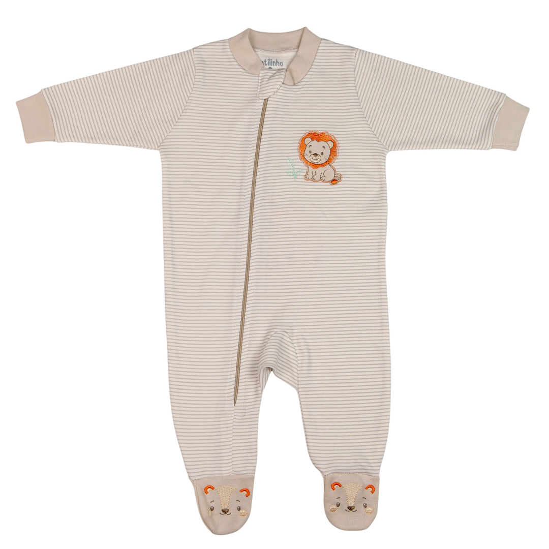 Confeccionado em suedine 100% algodão, oferece toque macio, respirabilidade e cuidado especial com a pele sensível do bebê. O bordado nos pés e no bumbum traz um charme extra à peça, enquanto o fechamento em zíper facilita na hora da troca, tornando o dia a dia mais prático.